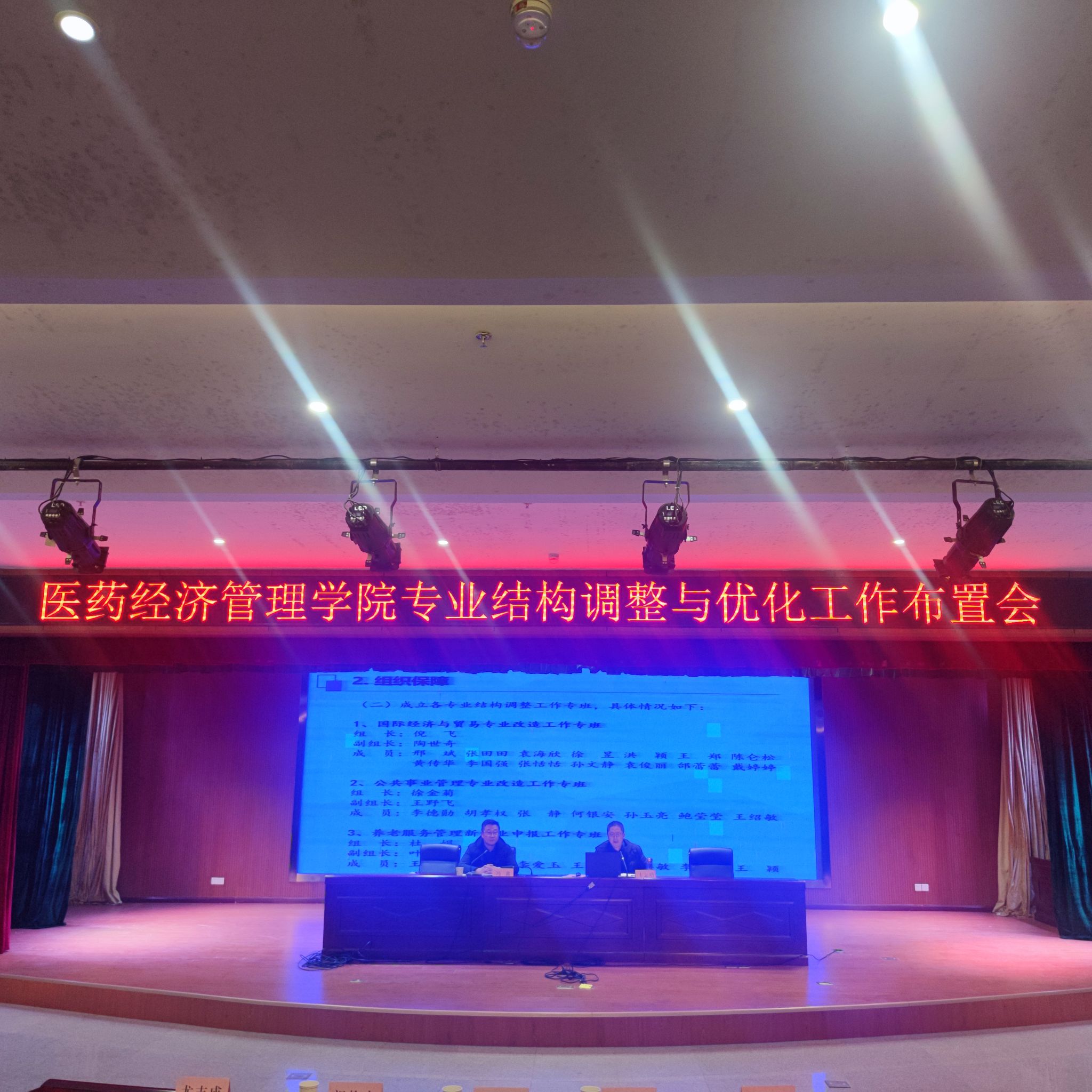 1月18日下午,医药经济管理学院召开本科专业结构调整与优化工作布置会,学院全体教职工参加会议。会议由学院党委书记冯鑫主持。
