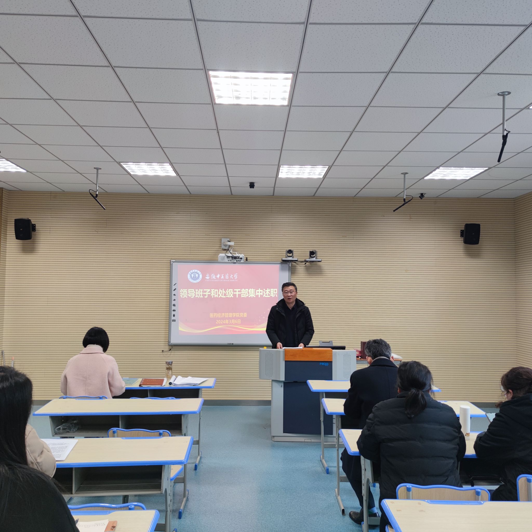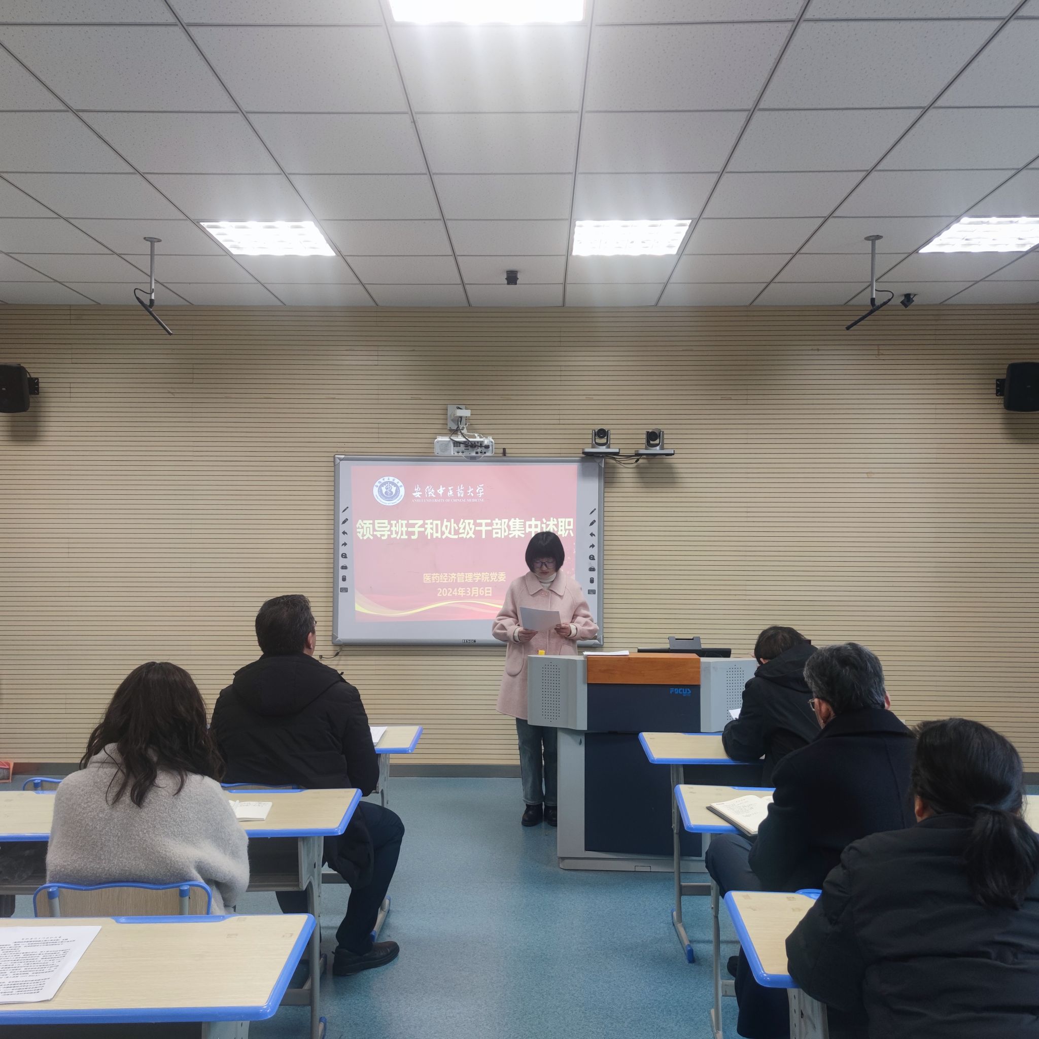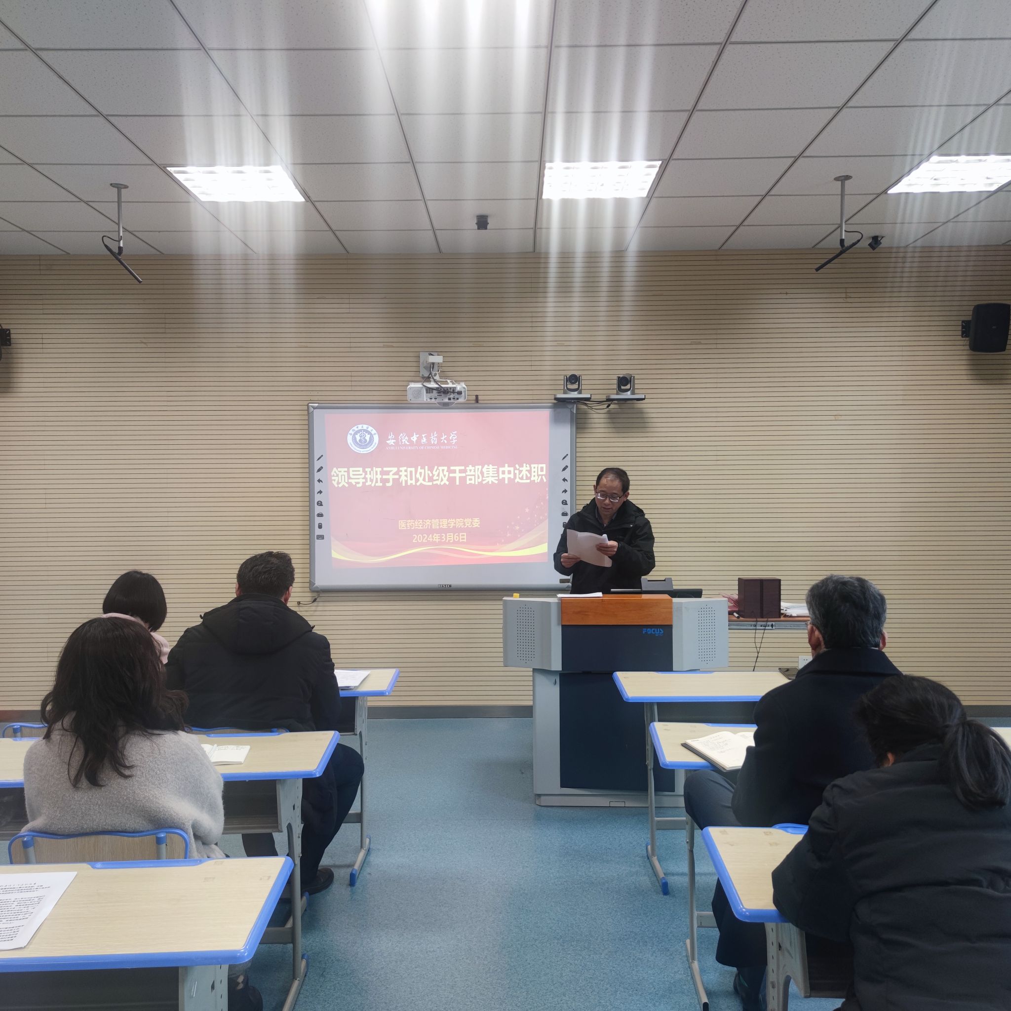 3月6日下午,医药经济管理学院召开2023年度处级领导班子和处级干部集中述职大会,学院党政领导、全体教师参加,会议由学院党委书记冯鑫主持。