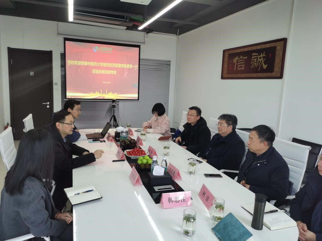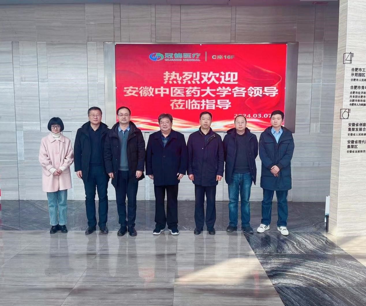 冠德医疗器械有限责任公司总经理胡国义对安徽中医药大学一行的到来表示欢迎,作为校友,他对母校在公司发展中多年以来给予的关心和支持表示由衷的感谢。他认为安徽中医药大学拥有较高的科研平台和人才资源,双方进一步的合作定能为彼此带来共赢。