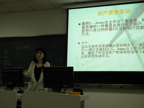 陶世奇老师讲授的内容为《资产与负债概要》。陶世奇由问题引入授课内容,详细讲解了资产、资产特征、资产分类;负债、负债特征、负债分类。陶世奇的教学示范课,板书规范, PPT制作精美,效果很好。她将抽象的资产负债问题讲授得栩栩如生。听课者不仅了解了企业的“资产——负债”问题,同时也认识到家庭“资产——负债”中可能存在的风险。