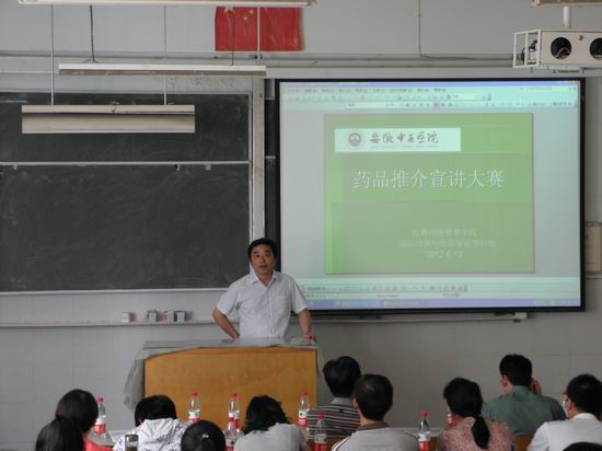 为加强学校特色专业国际经济与贸易专业建设,适应医药市场发展形势,更好地位医生、患者提供及时、真实和完整的信息,提高国际经济与贸易专业学生的语言表达和沟通能力,锻炼医药营销能力,提升学生掌握专业知识的本领。2012年6月13日在西区杏林楼102教室,我院在贸易、营销班级内部选拔的基础上举行了全院的药品推介宣讲决赛。 国际经济与贸易特色专业项目负责人、学院副院长王其巨在比赛前做了动员讲话,希望每位参赛队员认真对待比赛,要把这次比赛当成一种历练,要把在座的评委老师和观众当成你真正的客户,对产品知识的熟悉程度也决定了你的职业素质,希望大家在这样一个开创性的,开放性的平台上尽情的发挥自己的聪明才智,锻炼并提升自己的能力,成为真正的为社会所需的,在医药贸易领域有影响力的专业人才。