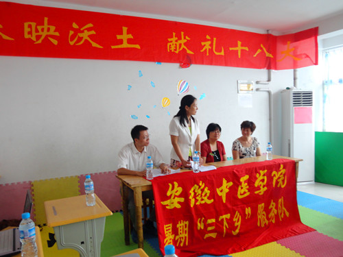 8月下旬我院党总支周莉副书记带领我院暑期“三下乡”服务队,赴合肥市包河区张巷城中村开展以“青春映沃土,献礼十八大”为主题的社会实践活动。