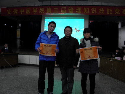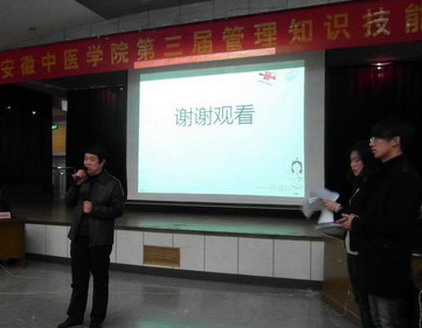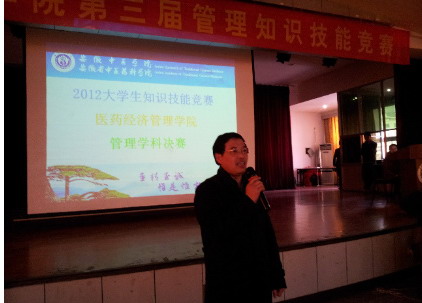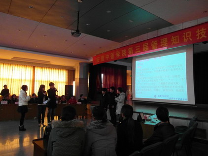 12月12日下午,我校第三届管理知识技能竞赛决赛在西区多功能厅举行。校教务处处长储全根教授出席并致辞,我院党政领导李珑、王伟、王其巨、各教研室主任、管理学科的全体教师、辅导员出席并与300多名学生一起观摩了比赛。
