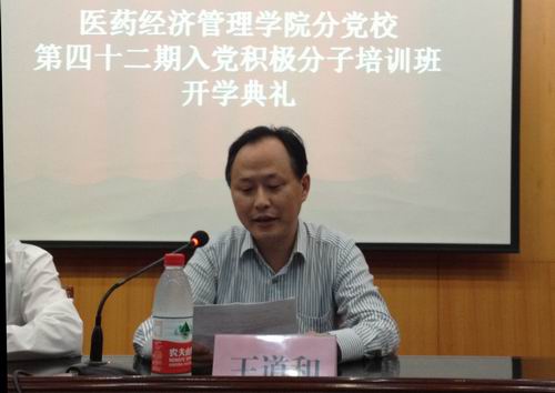 2013年5月8日晚6点,安徽中医药大学医药经济管理学院分党校第四十二期入党积极分子培训班开学典礼在东区学术报告厅隆重举行。学校党委组织部部长、党校副校长王道和,党委组织部副部长姚为久,校产公司党总书记何敏应邀出席了本次开学典礼,同时出席的还有我院党总支书记吴成海、党总支副书记黄学武、党总支秘书高霞、学生一支部书记顾琼,典礼由黄学武主持。