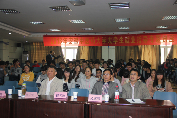 为做好大学生就业指导工作,让学生对职业目标有个清晰的认识。近日,我院特邀请我校实习就业基地—北京安汀医药生物科技有限公司董事长程雪翔先生来到我校,做了一场以“大学生如何设定职业目标”为题的就业指导专题报告。安汀药业副总经理侯乃公、学校招就处副处长孟庆全、学院党总支副书记黄学武、药学院金小琴老师参加了会议,会议由我院党总支书记吴成海主持。