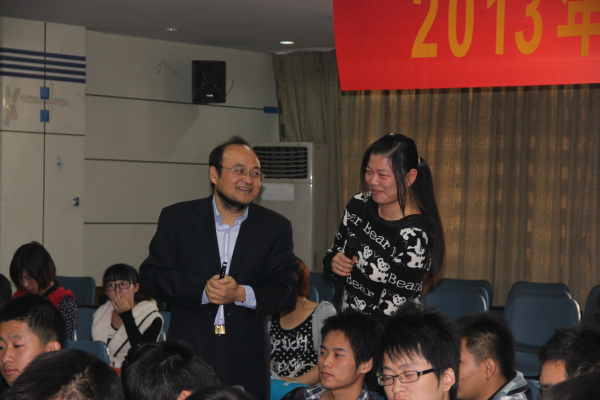 报告会上,程雪翔还积极和学生互动,其幽默、风趣的话语不时引来全场的掌声。