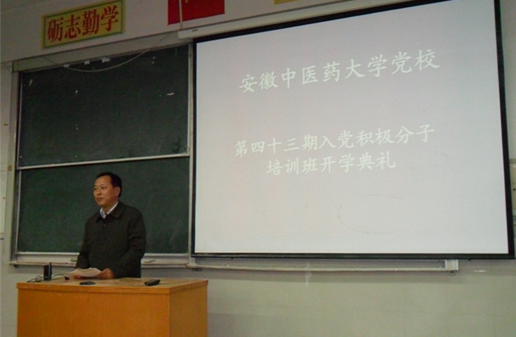 10月30日晚,由我院、医药信息工程学院分党校承办的学校第43期入党积极分子培训班在西区正式开课。学校党委组织部部长、党校副校长王道和,党委组织部组织员周其艳,有关学院领导王卫星、杨松涛等出席了开学典礼,典礼由我院党总支书记吴成海主持。