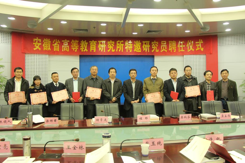 11月20日,安徽省高等教育研究所在安徽大学召开了特邀研究员聘任仪式及学术座谈会,省教育厅高教处储常连处长出席仪式并做重要讲话,为特邀研究员颁发聘书。