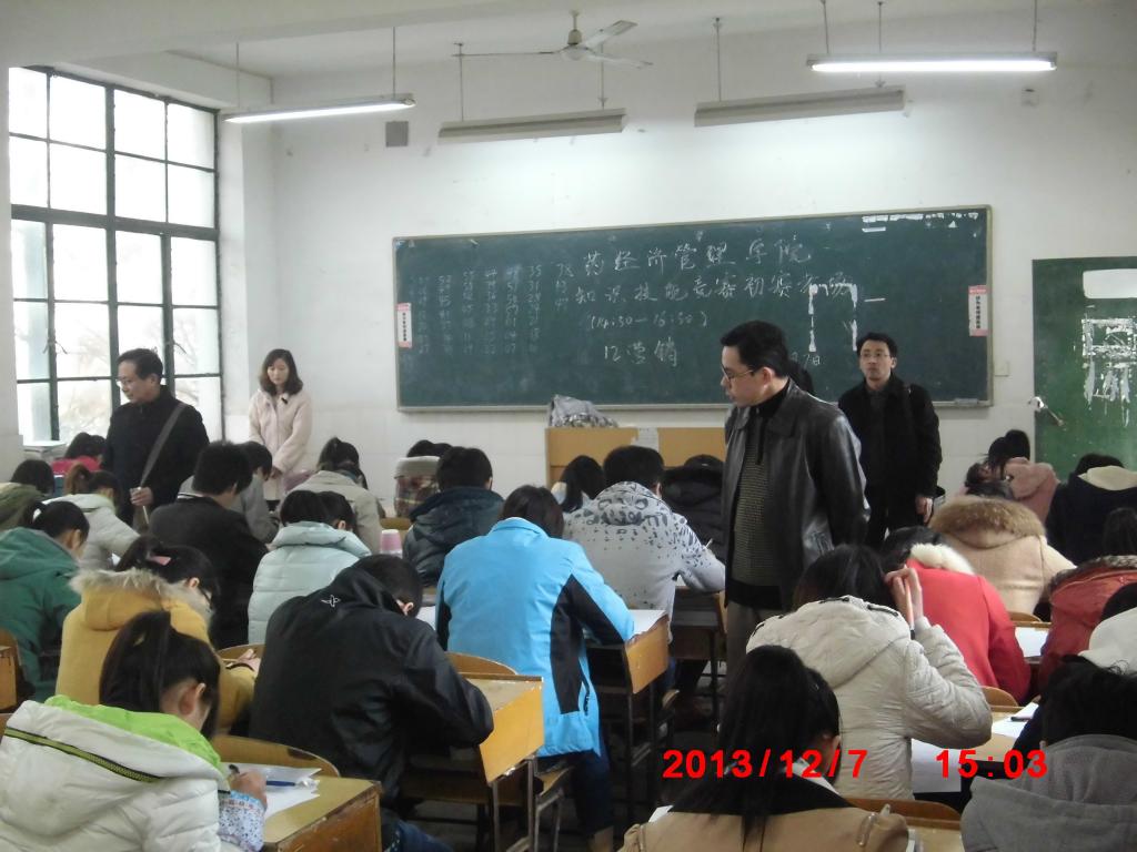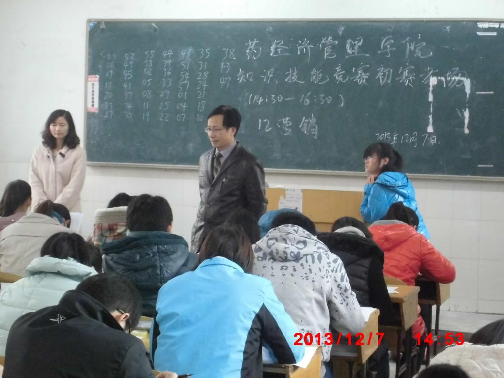 为进一步调动大学生自主学习的积极性,强化大学生基本理论与技能。12月7日下午,我院在西区弘景楼202、203、204、301、302、303、304七个教室举行大学生知识和技能竞赛初赛。学院党总支书记吴成海、副书记黄学武及相关学科教研室主任深入现场进行检查和指导,贸易、经济、保险学教研室老师及相关辅导员担任监考及评分工作。