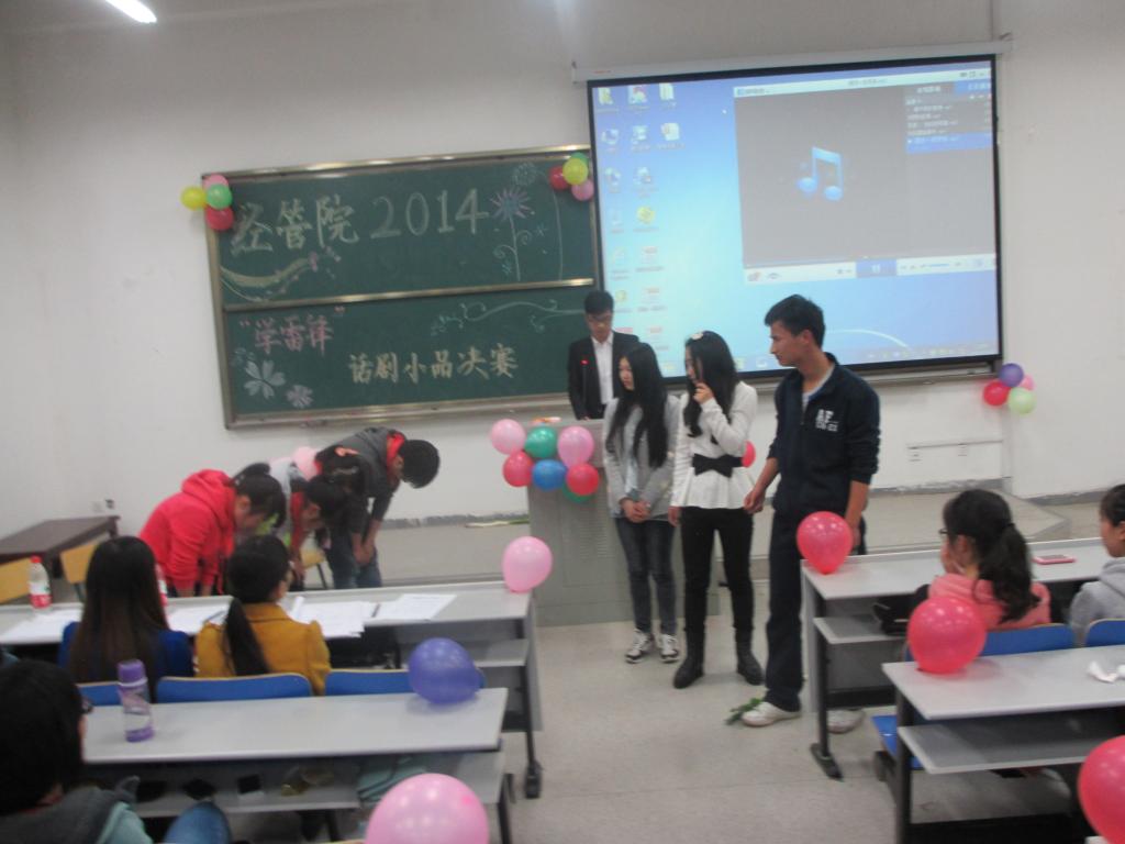 当晚,场上的气氛十分高涨,表现出浓厚的兴趣。经过初次筛选,参加决赛的队伍总共有五支,分别是12公管的《如此雷锋》,13公管的《别让他走》,13贸一《爱心支教》,13贸二《捡爱》,13营销《如此雷锋》。五支队伍整装待发,做好了充足的前期准备,个个精神饱满。