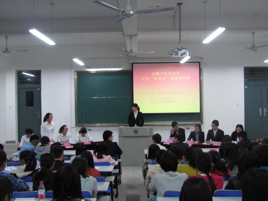 3月28日晚,我校首届“岐黄杯”辩论赛初赛在少荃湖校区如期举行,我院对战人文学院。我院参赛选手为选手雷浩、刘闪闪、黄诚和张艺娴。比赛围绕“高分是否体现高能”论题展开激烈争论。