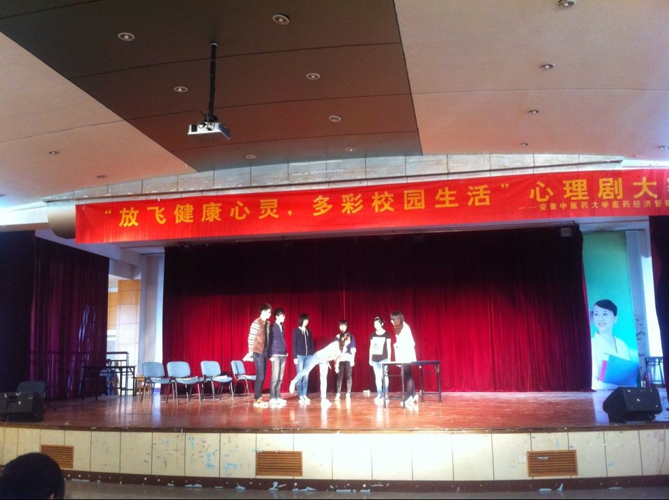 5月11日上午,我院一年一度的心理剧大赛在西区多功能厅拉开帷幕。有13级和12级各班9支队伍参赛,大赛邀请了心理学教研室的三位老师担任评委。