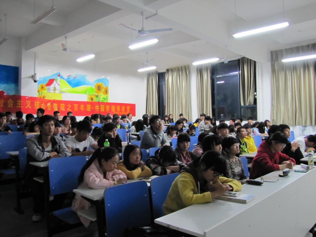 10月21-22日晚,我院举办了“百年潮·中国梦”系列视频展播活动。该片是由中央宣传部学习出版社、中央电视台联合拍摄的大型电视政论片,共5集内容,分别从百年追梦、中国道路、中国精神、中国力量和筑梦天下等5个不同的层面对“中国梦”进行了系统全面的阐释论述。通过这样的视频展播,同学们加深了对“中国梦”的理解,从什么是中国梦、为什么要实现中国梦、怎样实现中国梦,以及中国梦对中国和世界的意义等多个方面的问题都有了深刻的认识和感悟。