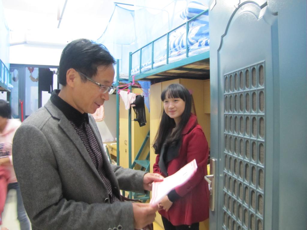 为加强我院学生宿舍安全和卫生管理,10月30日晚,我院党总支书记吴成海、党总支副书记黄学武、副院长丰志培三位领导分别带领部分辅导员对学生宿舍进行了抽查,借此提醒广大同学,在冬季来临之际要更加注意宿舍安全,并对同学们的住宿、生活等方面表达关心和慰问,听取学生有关奖助学金评选意见与建议。