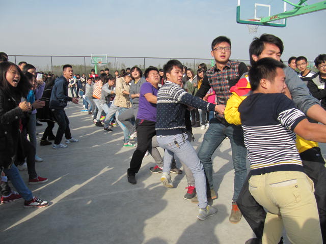 开幕式在一片欢快的音乐声和掌声中拉开序幕,运动员以专业为单位纷纷入场,裁判和运动员代表分别进行宣誓。仪式结束后,第一个项目——拔河比赛——正式开始。13和14级各班学生分别展开激烈的角逐,在此起彼伏的加油和喝彩声中,两个年级分别产生了两支冠军队伍,他们分别是13国贸一班和14心理班。