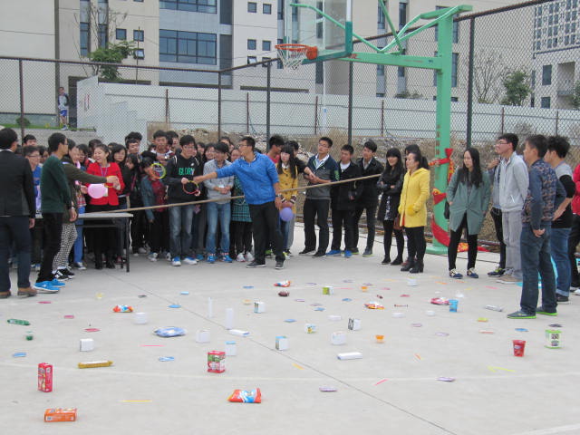 最后一项是套圈比赛,在场同学均可参加,每人一次机会,用项圈去套场地内的任何物品,套中即可拿走。礼品虽不贵重,但同学们的参与性都非常高。