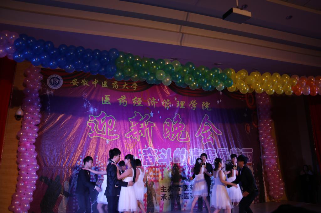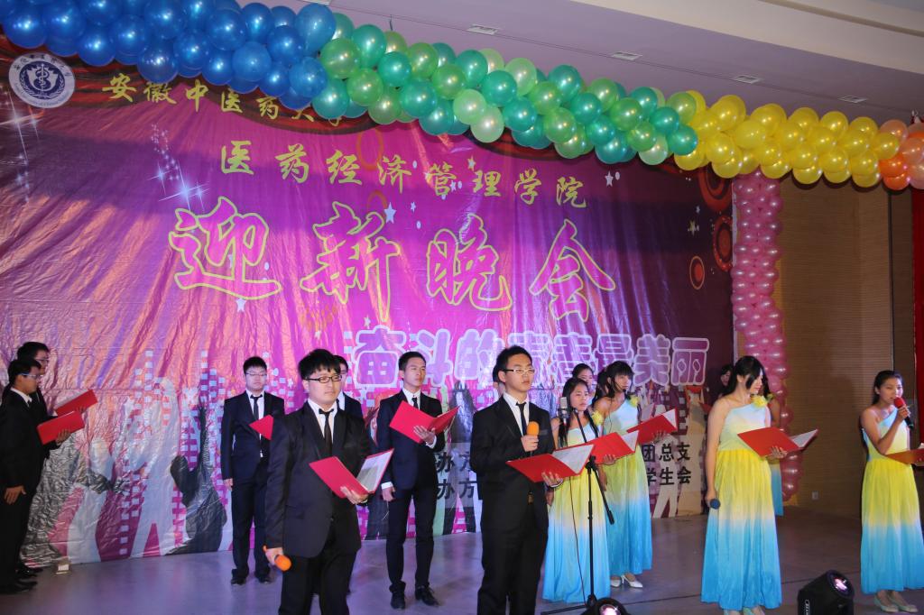11月18日晚,医药经济管理学院举办了以“奋斗的青春最美丽”为主题的2014级迎新晚会。党总支书记吴成海、院长魏骅、党总支副书记黄学武、副院长丰志培,学院各辅导员、各兄弟院总团总支代表、校学生会及部分协会代表,到场观看了晚会。