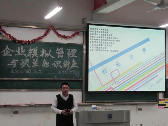 为增强我院学生创意意识、丰富创业知识、提高创业能力,并为大家参加企业模拟决策类比赛提供帮助,我院邀请了11级心理专业阚成成为大家开展了企业模拟管理与决策知识讲座。