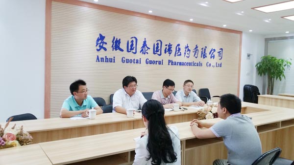 调研中,国泰国瑞公司总经理胡康、副总经理陈红军的热情接待。国泰国瑞医药有限公司,就公司现状及发展方向作了一一介绍。魏骅介绍了医药经济管理学院各专业设置,近几年毕业生就业情况,表达了与企业长期合作的愿望。