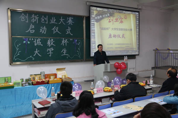 首先,吴成海发言,他将“诚信”和“毅力”结合起来谈,对即将开展的比赛进行了充分肯定。接着吴达武发言,他强调,当今时代,万众创新,大学生积极响应国家政策,顺潮流而上的创业活动十分值得肯定。接着,程雪翔就此次大赛的独特与创新性做了阐述。“明钼”菊花是本次创业大赛的主打产品,该产品十分契合信息时代视力迅速退化群体的需要。同时与创新实战相关的参赛要求和以虚拟为主的创业创意使得比赛既具有趣味性又富有现实意义。他热情洋溢的发言与有趣的提问将现场气氛推向高潮。随后吴达武与程雪翔共同完成揭牌仪式,标志着“诚毅杯”大学生创新创业大赛正式开启。程雪翔表示,希望通过给予同学们充足的资金和产品,鼓励参赛选手充分发挥聪明才智,给予怀揣梦想的人一个舞台。