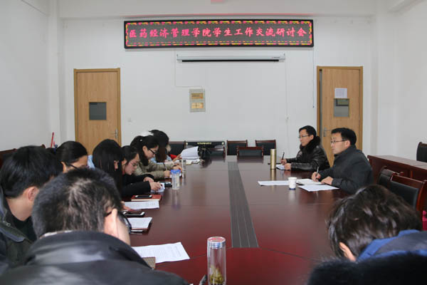 1月18日,医药经济管理学院召开专题会议,研讨交流学生工作。院党总支书记吴成海、副书记黄学武出席,全体专兼职辅导员参加了研讨。