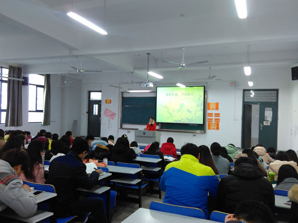张静从自我认知、关爱他人、团队合作三个方面谈如何正确对待自己及他人。讲座上,她让同学们谈谈“我眼中的自己”和“别人眼中的我”,教会学生正视自我,正视他人。不能过分关注自身,漠视他人。也要学会认识未知的自我,树立自信。