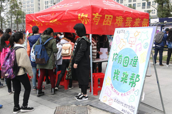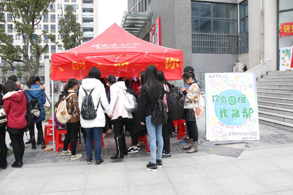 2016年3月15日上午十点半,经管院团总支学生会在少荃湖校区食堂门口开展“你有困难我来帮”主题志愿服务活动。