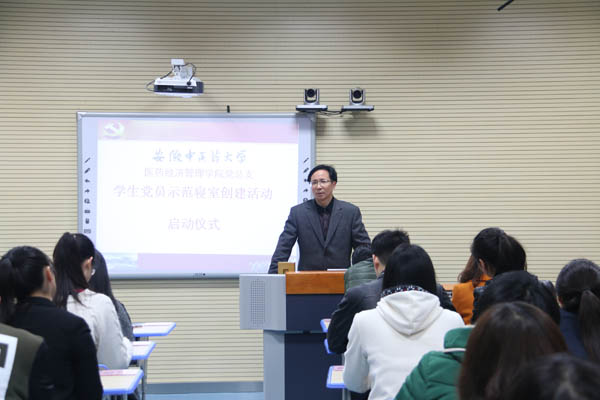 黄学武主持仪式,他指出,学生党员示范寝室创建活动旨在发挥学生党员领头羊的作用,创造一个高雅、舒适、安全的学习环境。他还提出为更好地创建学生党员示范寝室,党员们要提高政治思想素质,积极主动,将理论知识与实际行动结合起来。同时也应调动寝室的非党员的积极性,加强寝室精神文明建设,营造浓厚的学习氛围。
