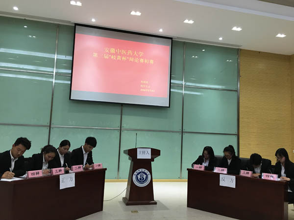 5月4日,安徽中医药大学第三届“岐黄杯”辩论赛初赛在新区教学楼B301举行。来自学校各学院共八支辩论队伍参加了比赛。医药经济管理学院的辩论队由李娜、姚梦竹、李主义、吕慧四名同学组成。