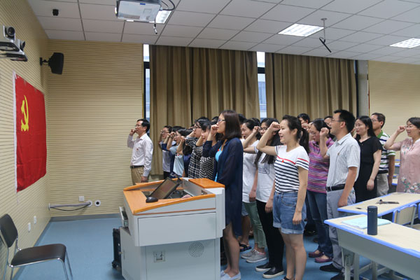 大会在雄壮的中华人民共和国国歌声中开始,全体新发展党员、参会党员举行了入党宣誓、重温入党誓词活动。在院总支书记吴成海同志带领下,全体党员面向党旗,举起右拳,庄严承诺:我志愿加入中国共产党,拥护党的纲领,遵守党的章程……随时准备为党和人民牺牲一切,永不叛党!