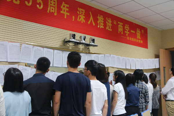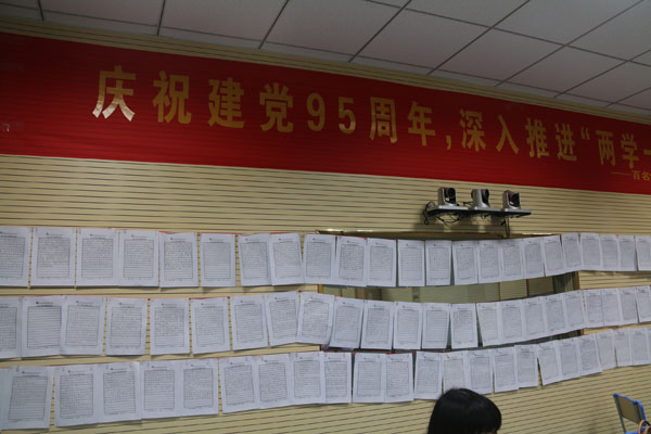 值此建党95周年之际,院党总支对全体党员手抄的党章进行展示,吸引不少老师同学驻足观看。