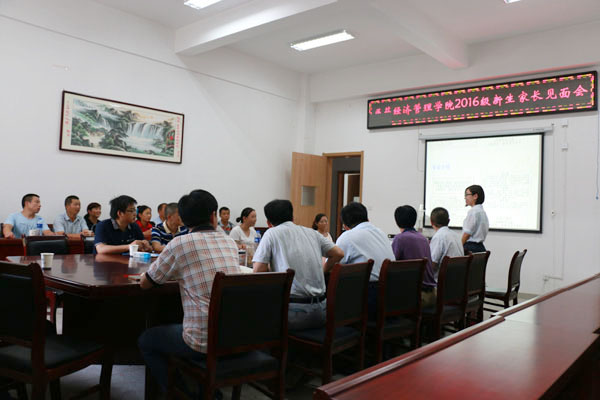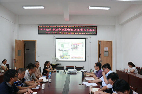 9月9日下午,医药经济管理学院召开2016级新生家长代表见面会。院党总支书记吴成海、院长魏骅、副书记黄学武、副院长丰志培出席。16级新生辅导员以及部分2016级新生家长代表参加见面会。
