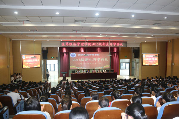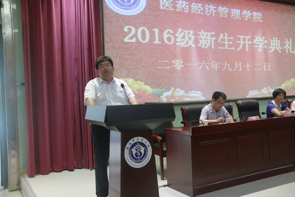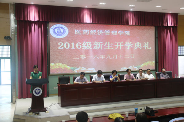 9月12日上午,安徽中医药大学医药经济管理学院隆重举行2016级新生开学典礼。学校副校长戴敏、学院党总支书记吴成海,院长魏骅,副院长丰志培,各教研室主任、教师代表、16级辅导员出席,450多名新生参加了典礼。会议由院党总支副书记黄学武主持。