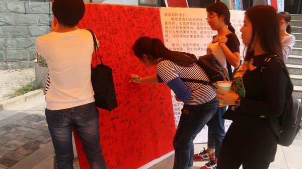 活动开始后,前来了解“三不”要求的同学络绎不绝。对于“我签名,我承诺”的活动,同学们也踊跃参与,在展板前排队签名。同学们纷纷对“三不”要求表示赞同与支持,体现大学生要求自我提升,追求进步的积极态度。