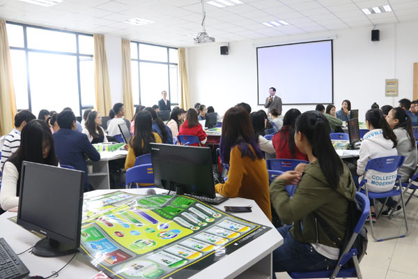 培训会上,吴成海首先发表讲话,他强调人力资源管理的重要性和实际意义,同时鼓励同学们充分把握机会,多多锻炼提升自我。随后吴加伟向同学们介绍物理沙盘知识,他详尽地讲解了系统沙盘的操作方法,并带领学员模拟一年的电子沙盘操作。接着是实践环节,同学们要分组实践操作两年的电子沙盘,成绩优秀者还与现场同学进行经验交流。