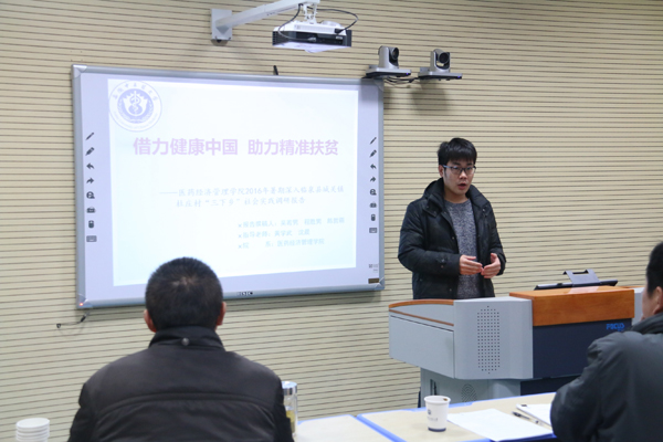 复赛分汇报和答辩两个环节。汇报中,每支队伍根据参赛作品,对具体思路、操作办法和主要内容进行解说。答辩环节,评委老师根据每支队伍的作品,有针对性的提出问题,同时对各队作品的可行性和科学性、理论和实践意义以及论证等方面提出进一步修改意见和建议。评委从参赛作品的内容和PPT制作两方面进行打分,根据总分由高到低的原则,最终苏路,吴若男,周荣君等7位同学带领的队伍晋级,他们将代表我们医药经济管理学院参加学校评比。