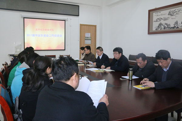 3月29日下午,经管学院在B7楼546会议室召开2017届毕业生就业工作推进会。学院党政领导、各教研室主任、实习就业秘书和2017届毕业班辅导员参加了此次会议。