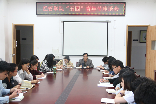 5月2日中午,经管学院召开“五四”青年节座谈会,院党总支书记吴成海出席,辅导员方悦、朱雯琪、各班代表参加了此次座谈会。
