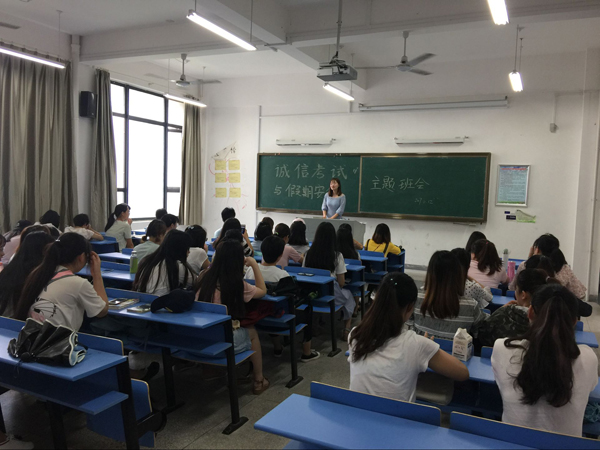 随着期末考试和假期的临近,医药经济管理学院为进一步完善学院学风建设,将“诚信考试”精神传播到学院每一个班级和每一名同学。也为使同学们的暑假平安快乐、健康有益,学院各班级认真召开“诚信考试与假期安全”主题班会。