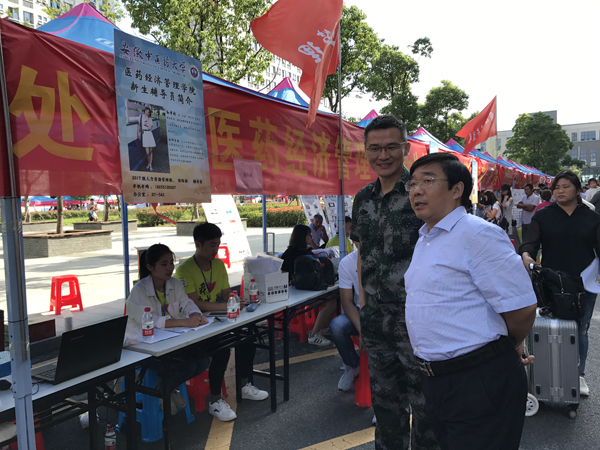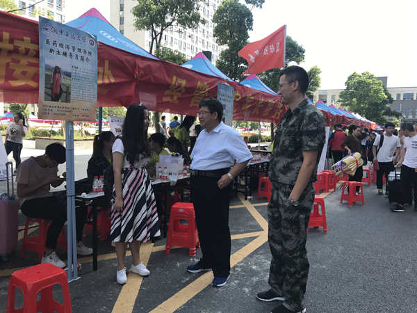 秋高气爽,丹桂飘香。9月13日至14日,医药经济管理学院迎来了来自全国各地的三百多名2017级新同学。 学校党委委员、安徽省中医药科学院专职副院长李泽庚,学院党政领导亲临迎新现场指导工作。领导们与新生、家长悉心交谈,并勉励新同学追求更好发展。院领导还询问新生及新生家长的到校方式,关心新生缴费、贷款等情况,要求辅导员、迎新工作人员告知家庭有困难学生相关补助政策,保证新生顺利入学。