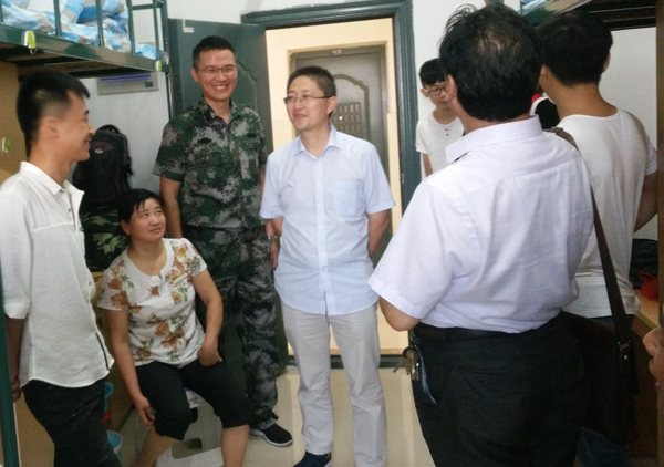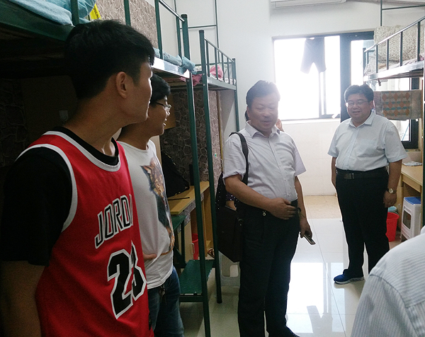 报到当天,院领导便积极走访学院新生入住各楼层各寝室。每到一个宿舍,院领导都与学生及其家长进行交流,首先对他们的到来表示欢迎,在充分了解他们报到和适应情况后询问新生及家长对学院、对学校的意见和建议。院领导还仔细检查寝室设施是否完善,并提醒大家要提高自我保护意识和警觉意识,要时刻注意宿舍安全问题。最后院领导指出,希望各位同学能够尽快适应大学校园环境,学会生活,更好地进入角色。