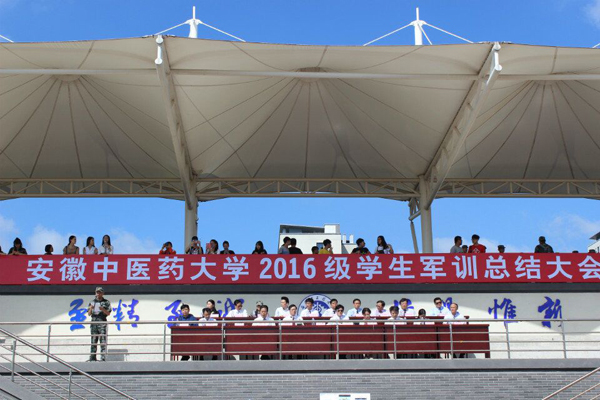 9月16日,安徽中医药大学2016级军训总结大会召开,为期七天的军训落下了帷幕。校领导、各二级学院负责人出席本次大会,各班辅导员、2016级全体同学参加了军训总结大会。