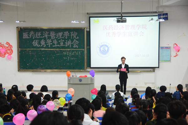 10月10日晚上6点,医药经济管理学院在教学楼B326举办优秀学生宣讲会,全体2017级新生共同聆听了这次宣讲会。