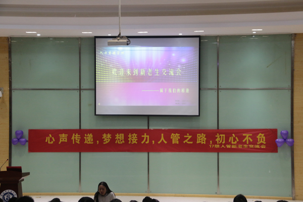 本次交流会, 2017级人力资源管理班邀请了来自12,13,14,15,16级人力资源管理专业的老生同学前来经验交流。交流会伊始,12级毕业生毕缘媛就自己的大学经历,考研经验等与新生进行交流。随后郭笑茹、孟杜、潘志文、赵方舟、杨健、孙浩黄诚等学姐学长分别在学习、实践、比赛、团学活动等方面分享了自己的宝贵经验,鼓励新生多参加活动竞赛,拓宽视野,提升素质。期间17新生还准备了歌曲、舞蹈等精彩节目,气氛活跃热闹。最后17人管新生代表发表感谢,并表示将以优秀学长学姐为榜样,努力学习,全面发展,不负初心。