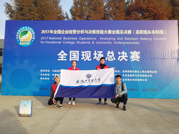 11月10日-12日,由中国管理现代化研究会决策模拟专业委员会主办,江苏财经职业技术学院承办的2017年全国企业经营分析与决策技能大赛在江苏淮安成功举办。来自全国50多所高校、200多名选手参加了比赛。医药经济管理学院代表队首次参赛,一路过关斩将,最终荣获全国总决赛二等奖,教师黄传华、李志广获得“优秀指导教师”称号。