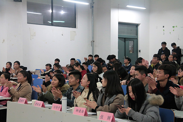评比分为PPT展示和节目表演两个阶段。参赛班级想法新颖,准备充分,在PPT展示阶段,幽默风趣的图片和视频展示了各班级良好的学习氛围、积极向上的态度和丰富多彩的集体活动,体现出幸福、温馨的班级风貌。节目表演阶段更是将各班级的集体荣誉感充分体现。随后,汪昕宇对各班级在比赛中的表现给予评价并希望各班级能在以后的学习生活中继续保持这份幸福感。最后,17级国际经济与贸易二班凭借出色的表现获得本次评比第一名。