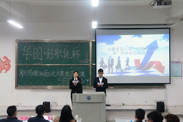 12月4日,医药经济管理学院于教学楼B326举行了安徽省第六届“华图·好职优杯”职场模拟面试大赛校区决赛。