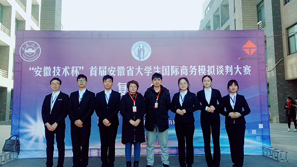 2017年12月8-10日首届安徽省“安徽技术杯”大学生国际商务模拟谈判大赛在安徽大学举办,本次比赛由安徽省教育厅主办,安徽大学承办。医药经济管理学院贸易教研室副主任倪飞、辅导员沈晨率队参赛。经过激烈角逐,最终获得安徽省三等奖的好成绩。