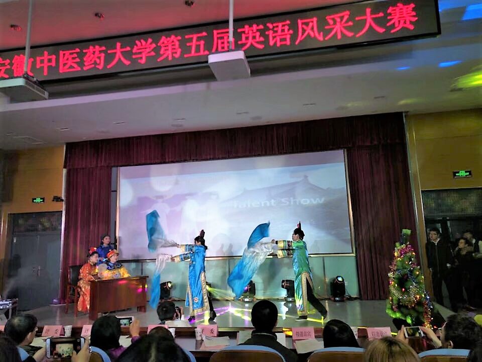 12月21日,安徽中医药大学第五届大学生英语风采大赛在教学楼A114圆满落幕。医药经济管理学院以出色的表现荣获第一名的好成绩。