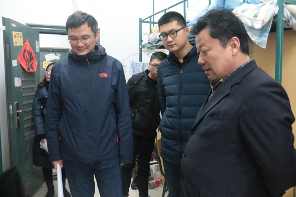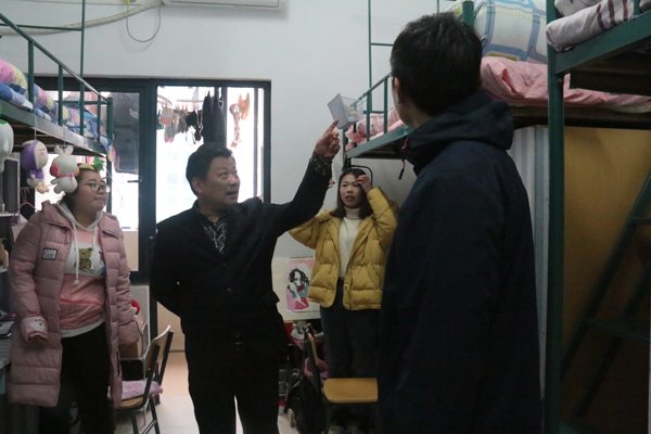 12月28号,医药经济管理学院党委书记沈少蕾,副书记方晓走访学生寝室,学院分团委副书记范思敏、辅导员李志广陪同。